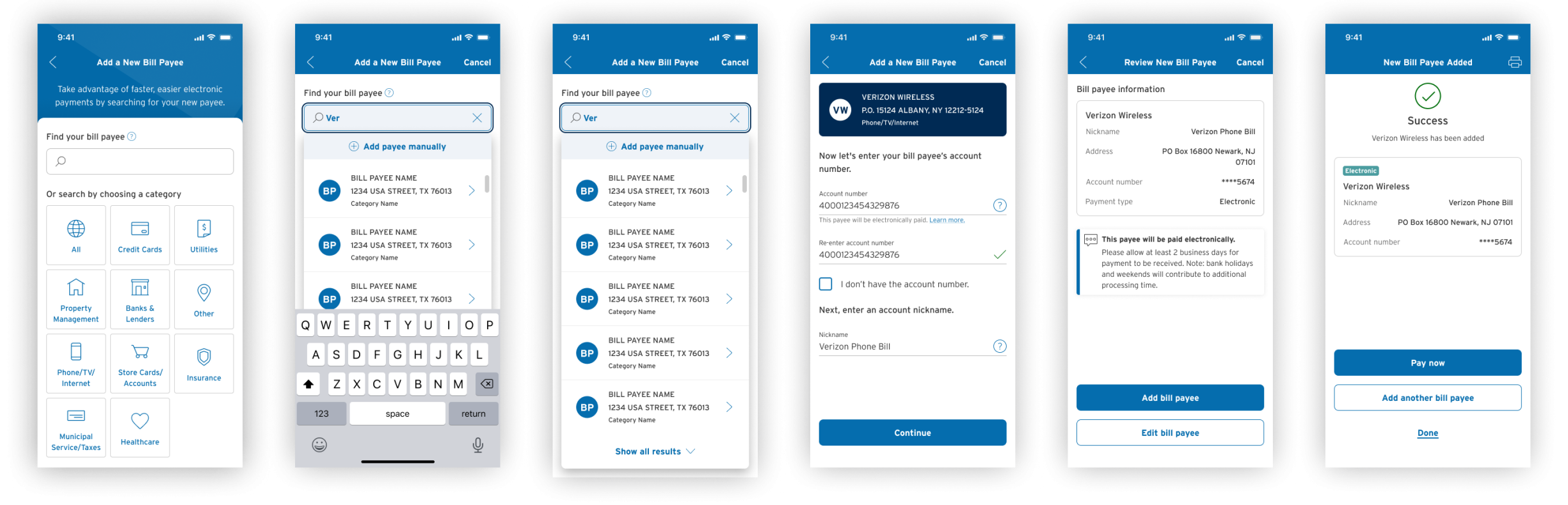 Additionally, a completely revamped experience for adding billers and paying bills. Users now have the ability to quickly search through 75M vendors in the data base, and with predictive search, users can quickly add them to their roaster and pay bills in no time.